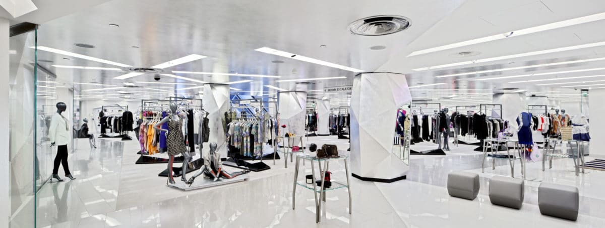 Restructuring and interior design of a department store building, Harvey Nichols, Hong Kong 2005, Dublin 2006, Bristol 2009, London 2010.