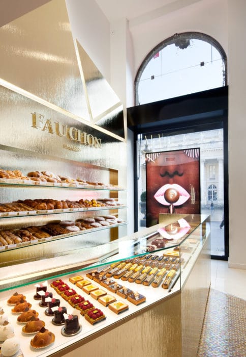 Fauchon presents itself today as the big house of food luxuries. The house Fauchon is distinguished by three moods: a black / white / gray atmosphere, found in grocery stores, a golden atmosphere for bakery, pastries and coffee, and finally a silver atmosphere for the restaurant, light and bright like the kitchen seen by Fauchon. The different spaces communicate through doors and stairwells where we find the fuchsia pink that celebrates the brand. Developed in Paris and then in Asia, the Fauchon concept took the form of an isolated building in Casablanca. In the basement there is a laboratory that makes fresh products, on the ground floor there are bakery, grocery store and restaurant areas on the floor of the seminar rooms. Outside, the whole is lacquered black, like the Fauchon facades in the world. The large windows are clad with aluminum plates cut with water jet that take the silver color of the restaurant.