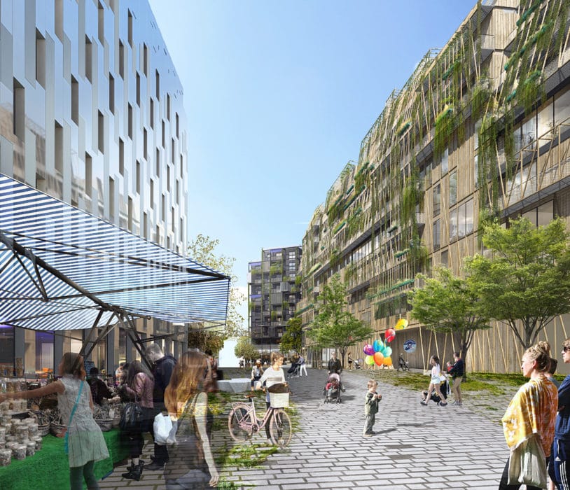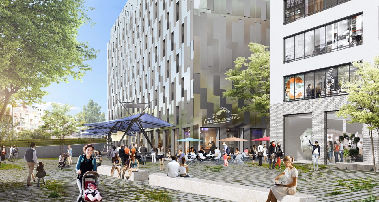 Tous les pieds d’immeubles accueillent des activités : restaurants, ateliers et espaces d’exposition, job center, espace coworking, école du numérique, crèche associative.