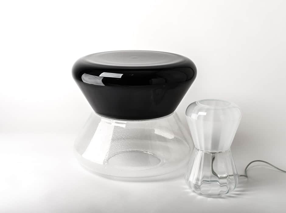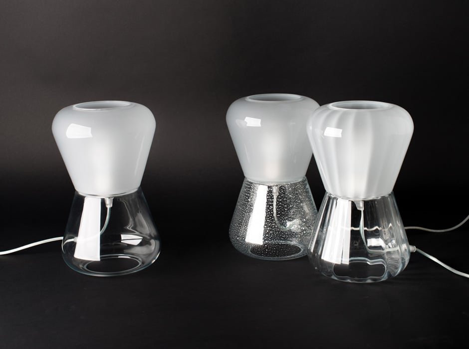Conception de 12 pièces en verre soufflé à la bouche à Murano, comprenant lampes, lampadaires, appliqués, lustres et tables basses.