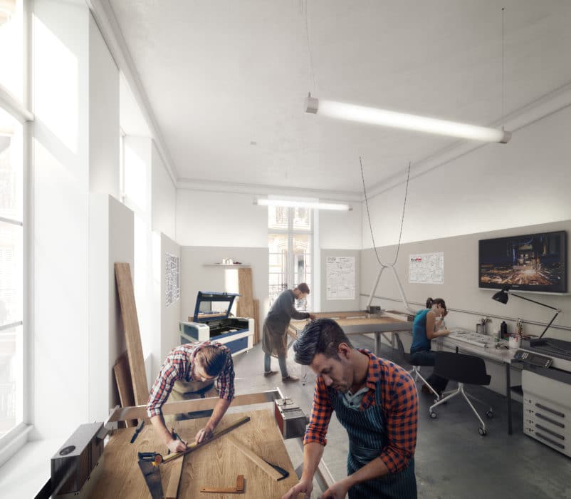 La Fabrique des arts 3.0 accueillera chaque année des artistes en résidence qui pourront s’appuyer sur un écosystème d’artisans, d’architectes, de designers pour les accompagner dans leurs projets de conception d’œuvre d’art numérique. C’est aussi un lieu de pratique et de transmission qui a pour objectif de s’adresser à tous. Les parisiens pourront ainsi profiter d’un programme d’initiations et de formations, flâner, manger, fabriquer, … Les galeries seront invitées à intégrer un incubateur de la création artistique et les entreprises, dans une logique de team building, pourront profiter d’une immersion dans les nouvelles fabrications.