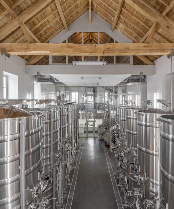 Sur le plan architectural et urbain, le projet opère une transformation du site comprenant la rénovation de l’ensemble des édifices et la construction de nouveaux ouvrages – parmi lesquels deux bâtiments de production, une tour de circulation verticale, ou encore un souterrain reliant les caves – en un ensemble fonctionnel et cohérent, tout en conservant une forme hétérogène qui participe du paysage urbain, par ailleurs classé site patrimonial remarquable.
