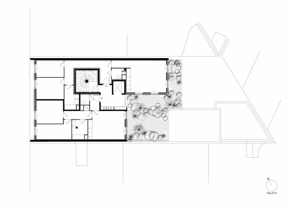 Réhabilitation et extension d’un hôtel particulier en ensemble mixte à usage de bureau et logement, comprenant 4 niveaux de bureau divisible d’une surface de plancher de 960 m², 4 niveaux de logement d’une surface de plancher de 575 m², et un ensemble de terrasses et jardins accessibles de 133 m².